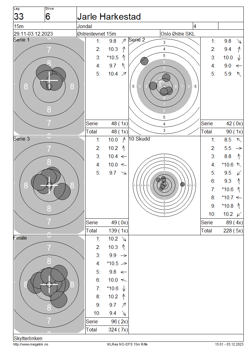 | 15 Skudd | 139 | 25 Skudd | 228 | 35 Skudd | 324 | ||||||||||||||||||||||||||||||||||||||||||