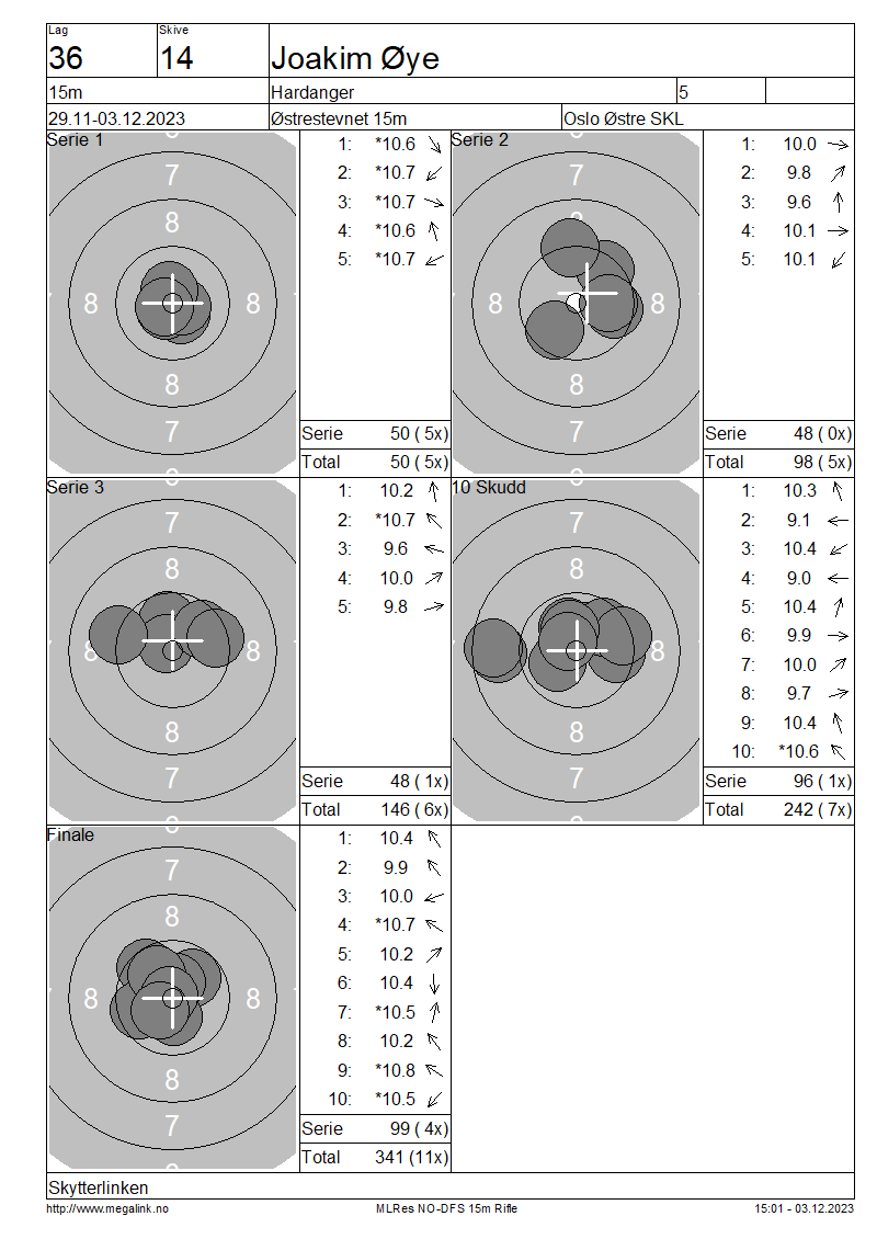 | 15 Skudd | 146 | 25 Skudd | 242 | 35 Skudd | 341 | ||||||||||||||||||||||||||||||||||||||||||