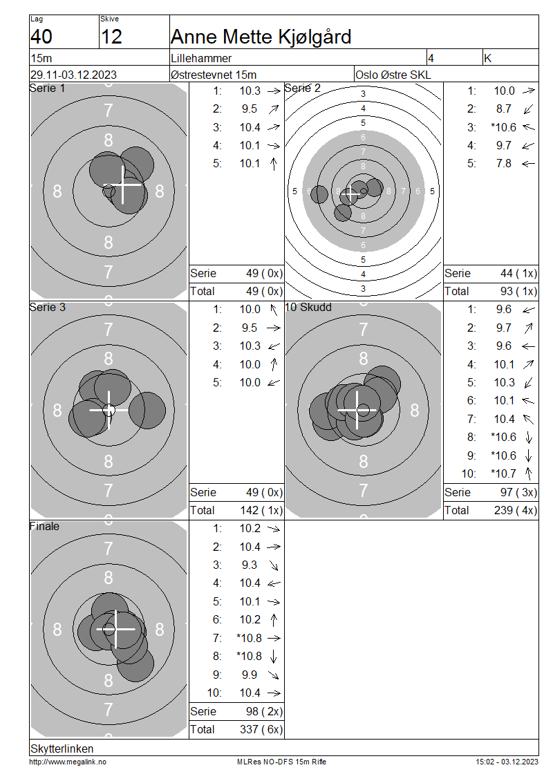 | 15 Skudd | 142 | 25 Skudd | 239 | 35 Skudd | 337 | ||||||||||||||||||||||||||||||||||||||||||
