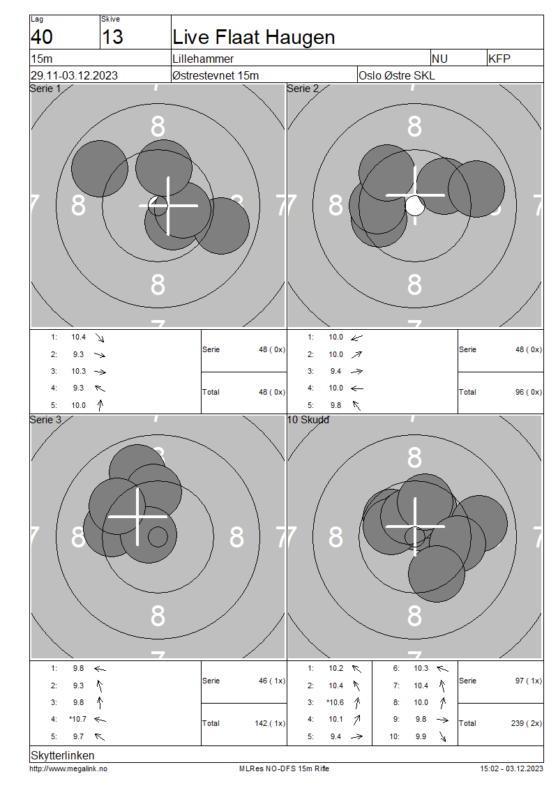 | 15 Skudd | 142 | 25 Skudd | 239 | 35 Skudd | 239 | ||||||||||||||||||||||||||||||||||||||||||