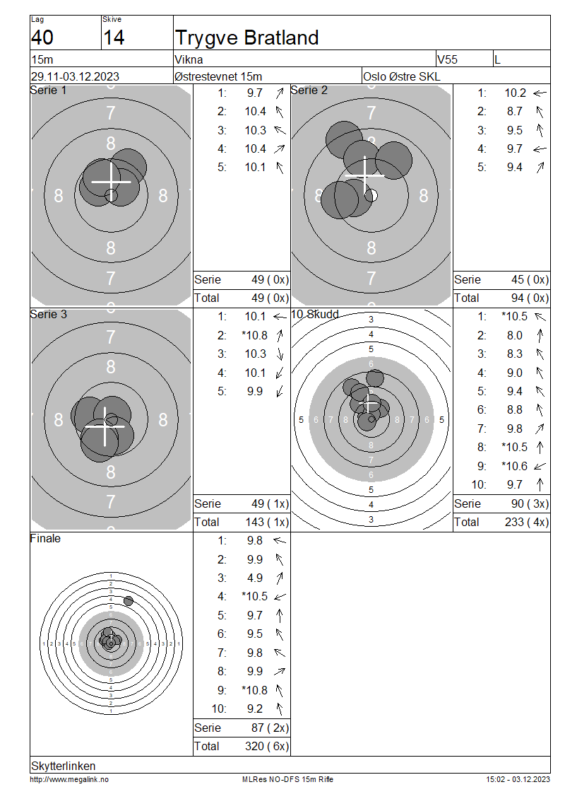 | 15 Skudd | 143 | 25 Skudd | 233 | 35 Skudd | 320 | ||||||||||||||||||||||||||||||||||||||||||