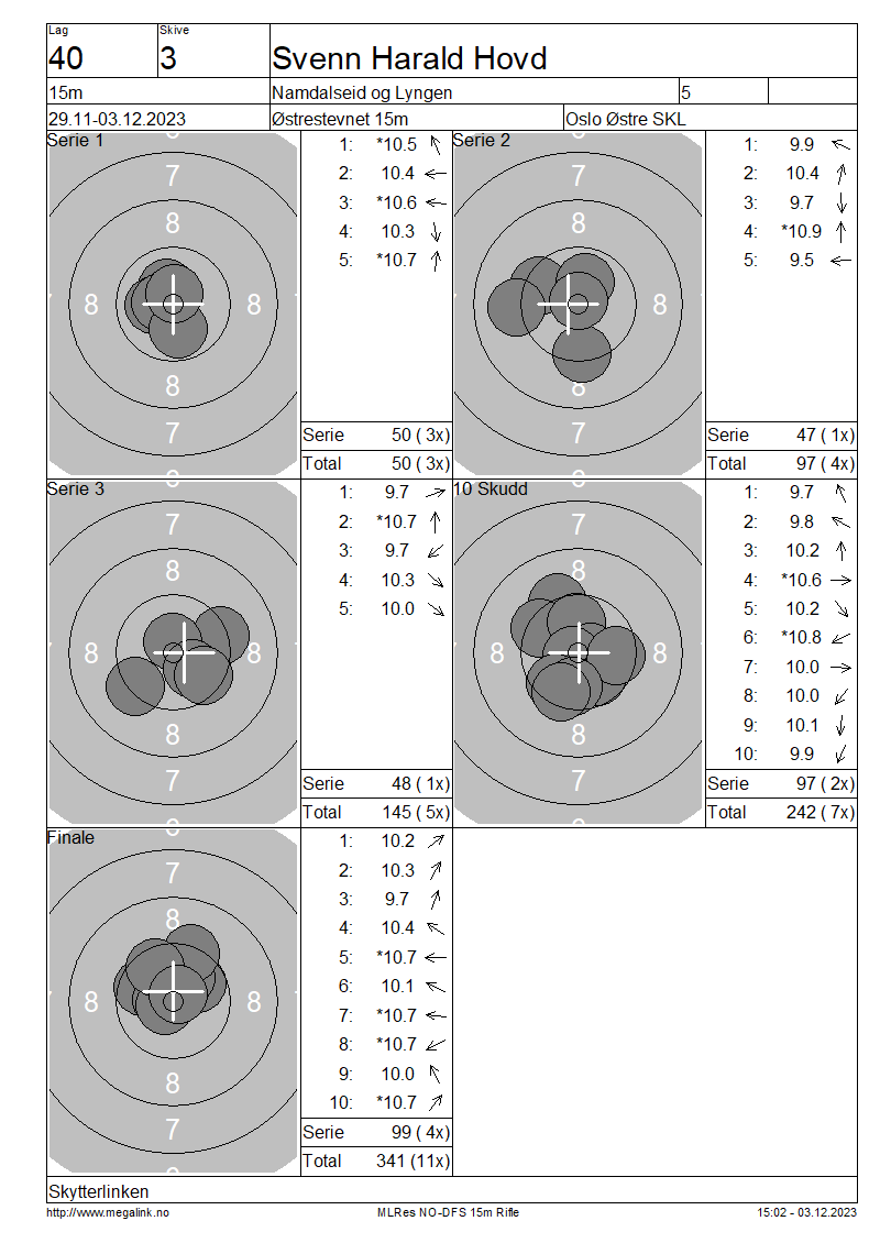| 15 Skudd | 145 | 25 Skudd | 242 | 35 Skudd | 341 | ||||||||||||||||||||||||||||||||||||||||||