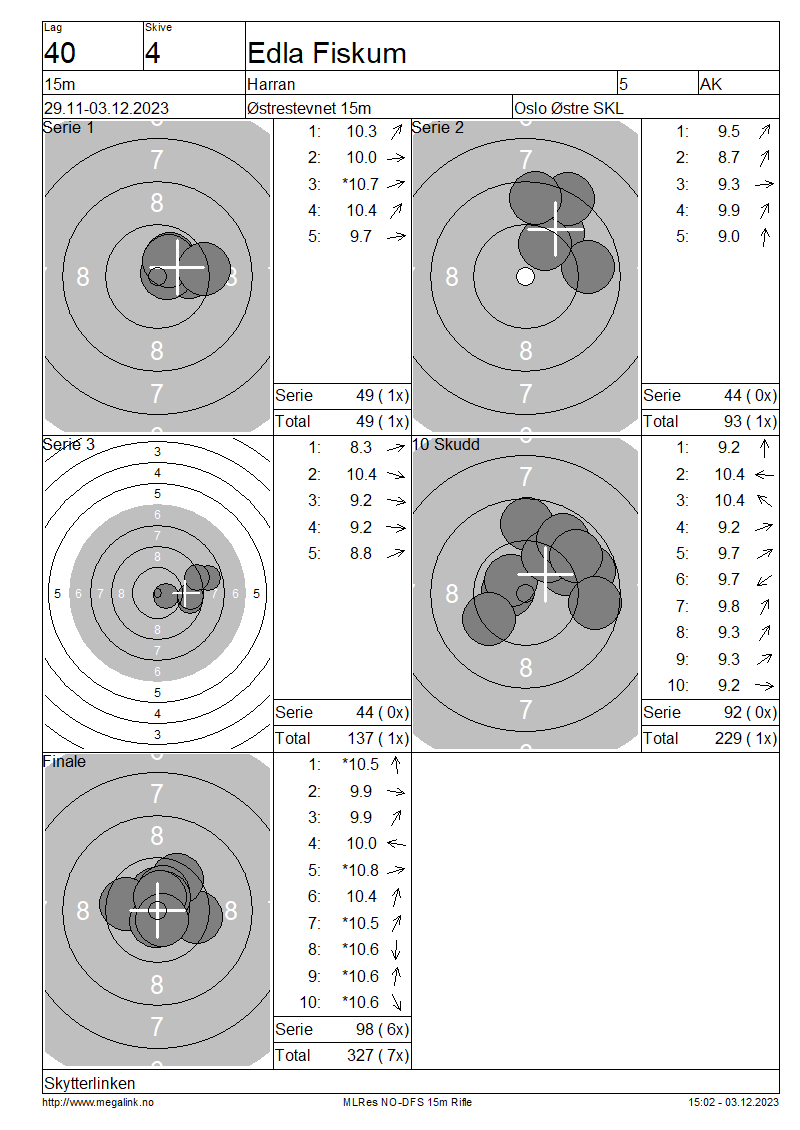 | 15 Skudd | 137 | 25 Skudd | 229 | 35 Skudd | 327 | ||||||||||||||||||||||||||||||||||||||||||