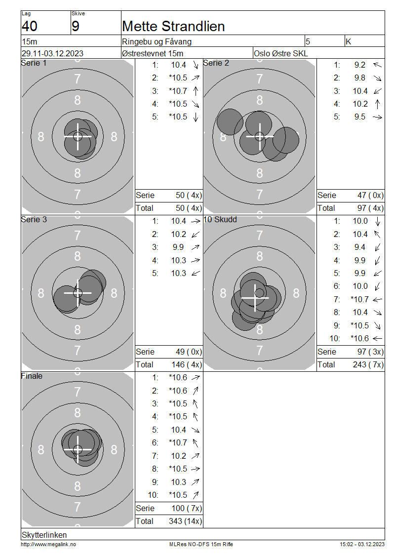 | 15 Skudd | 146 | 25 Skudd | 243 | 35 Skudd | 343 | ||||||||||||||||||||||||||||||||||||||||||