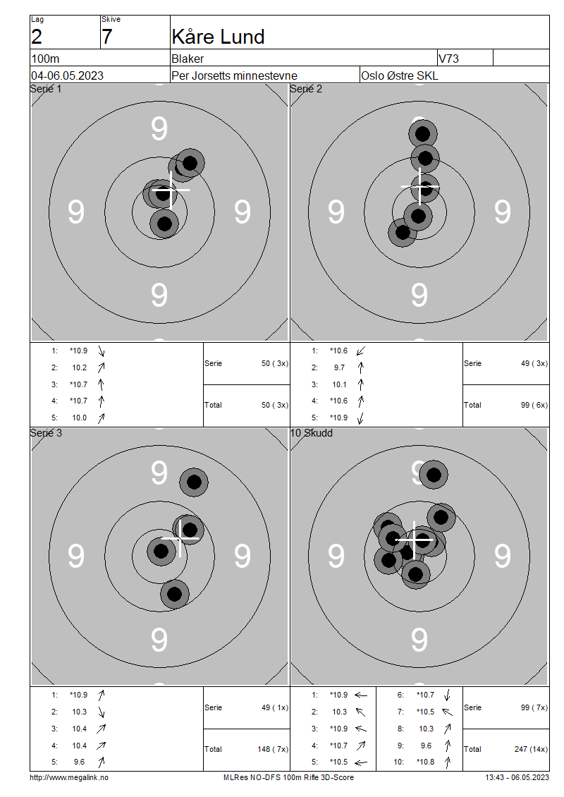 Resultater lag 2 100m