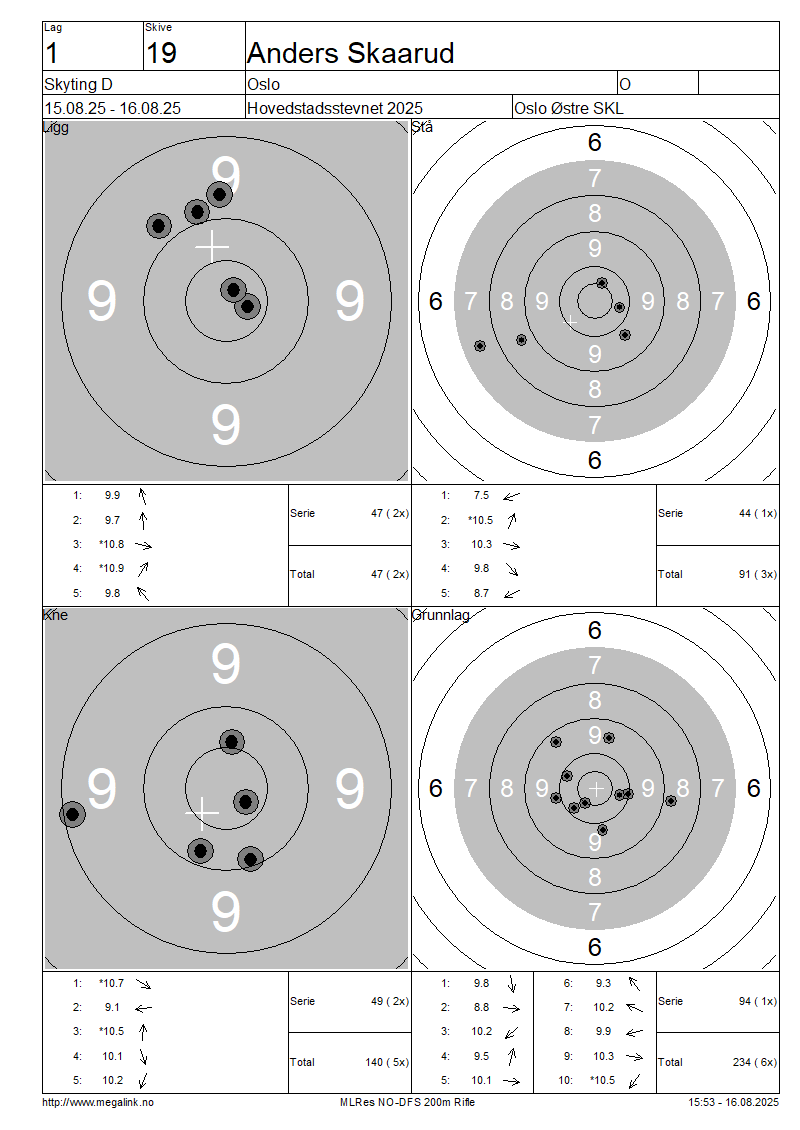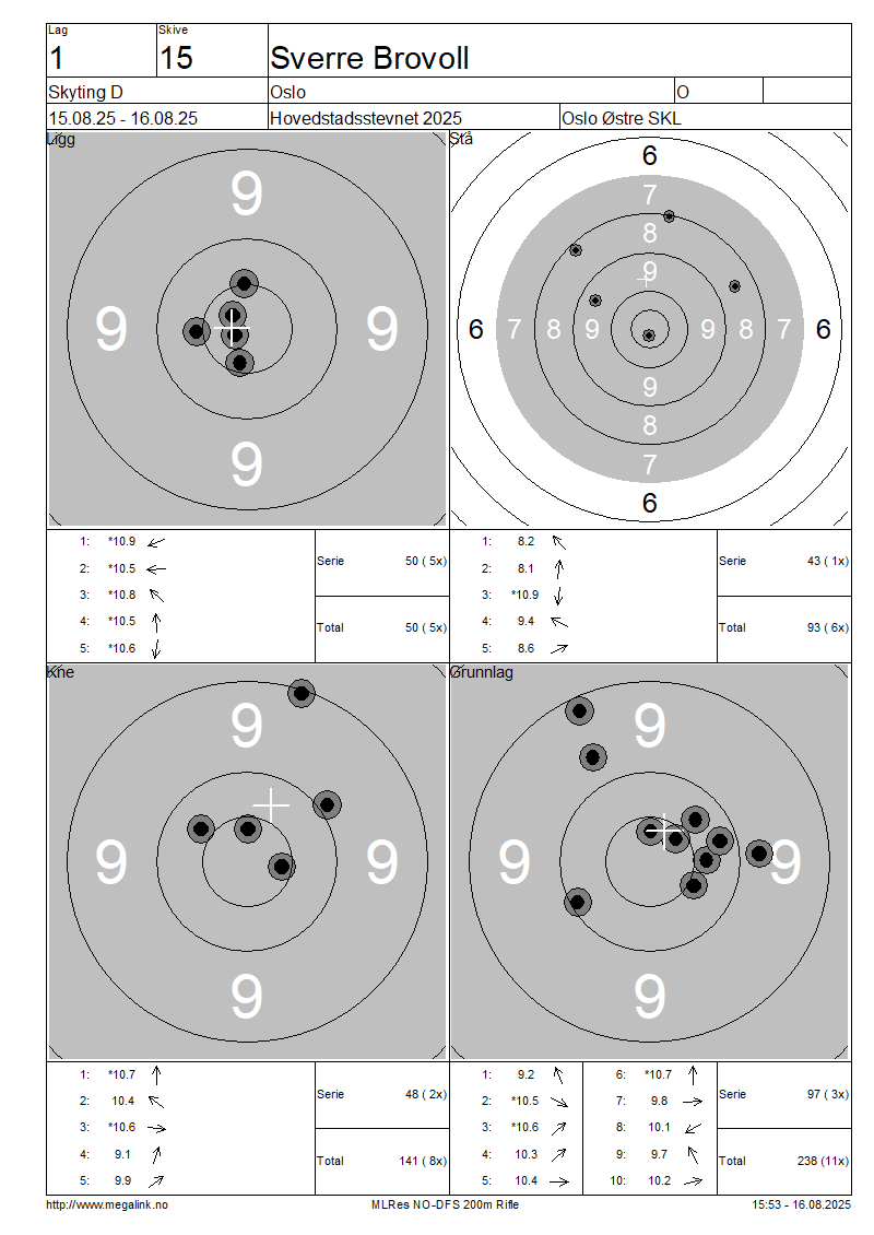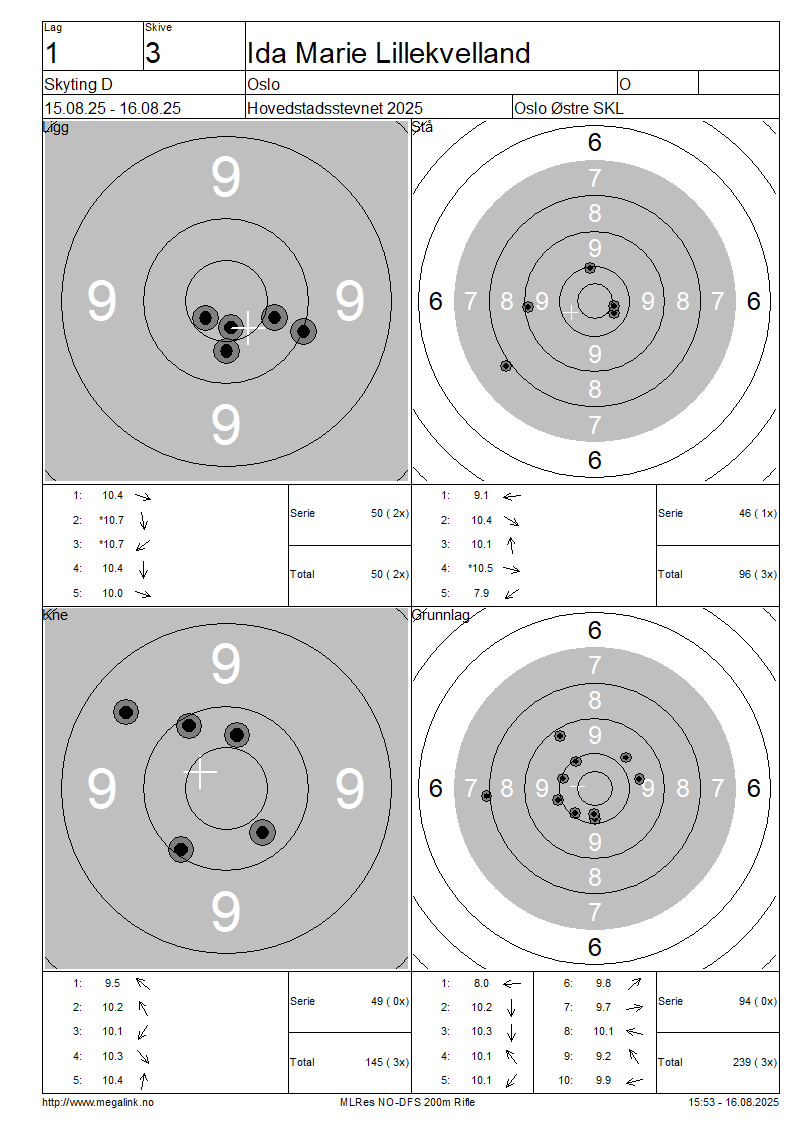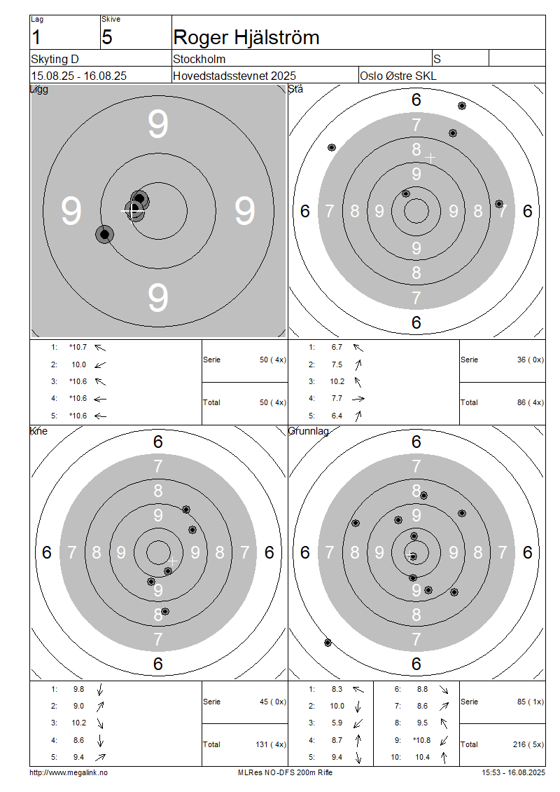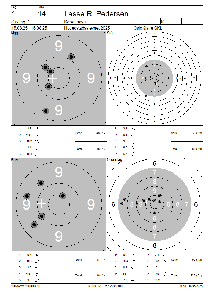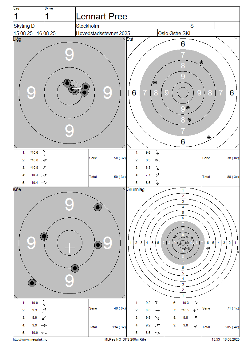 Resultater lag 1 Skyting D