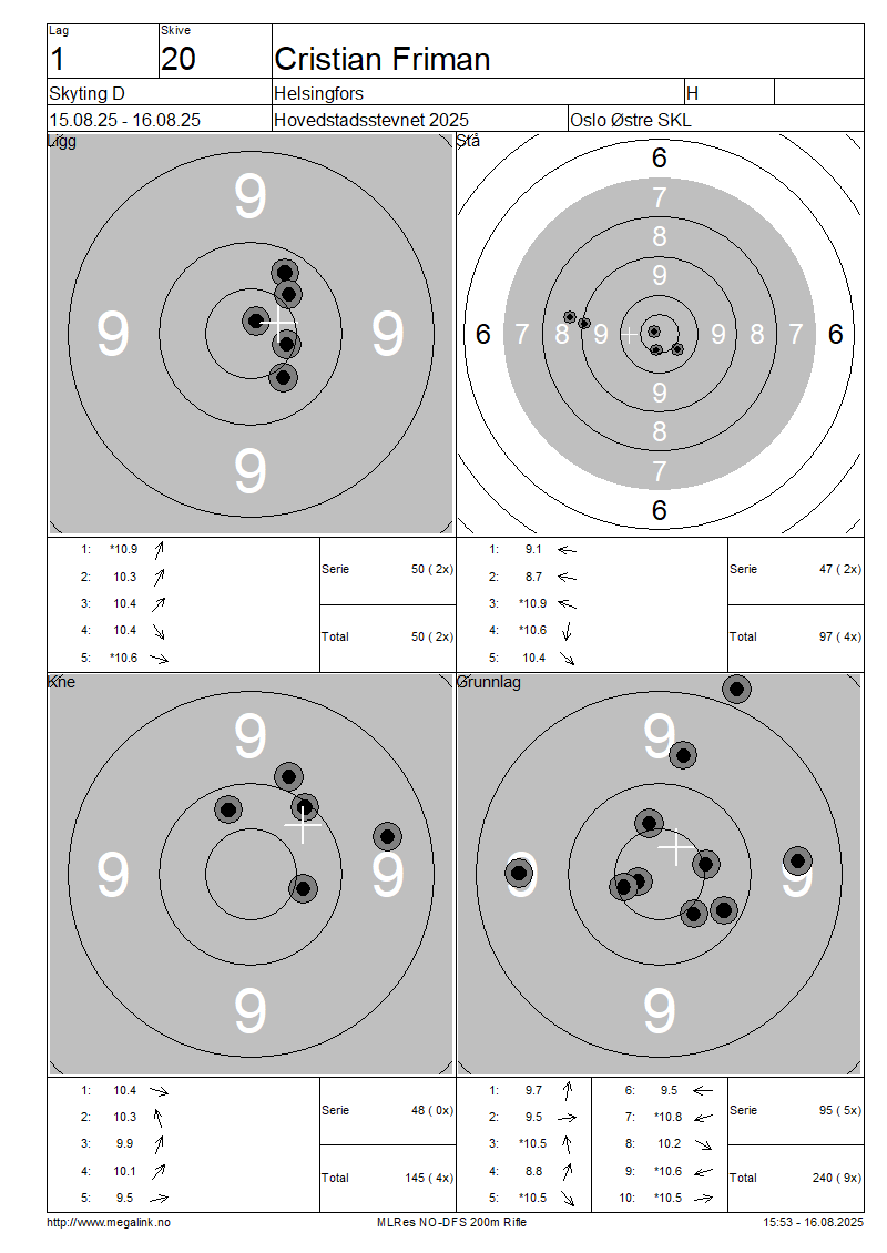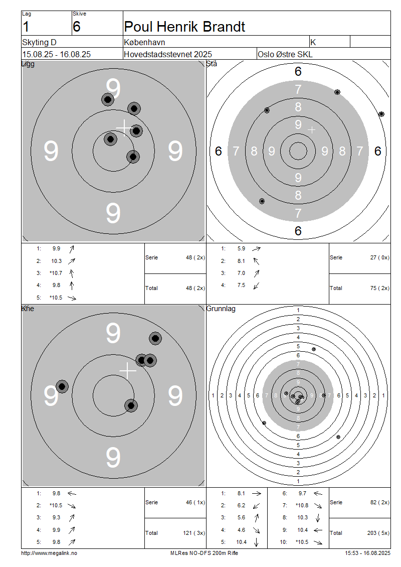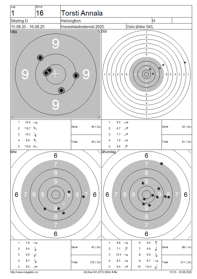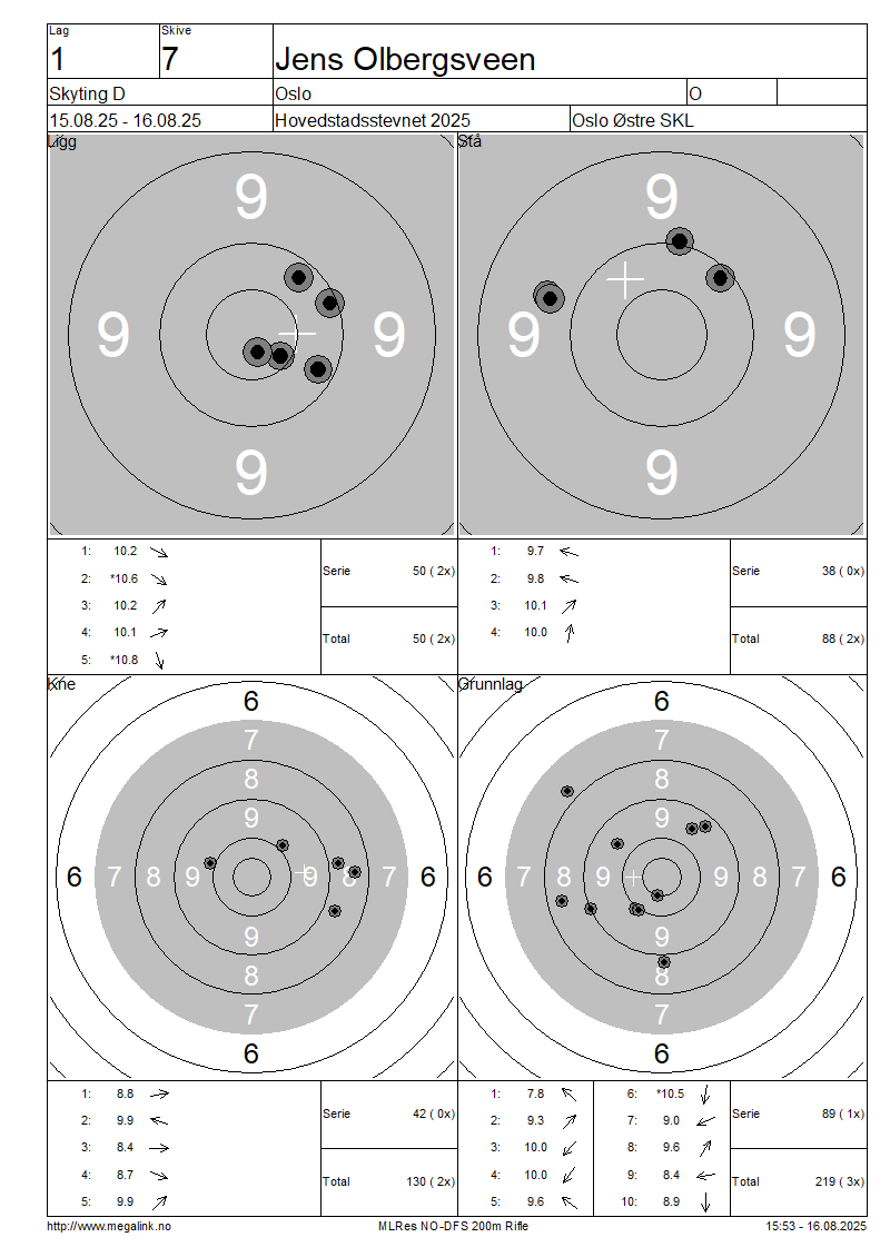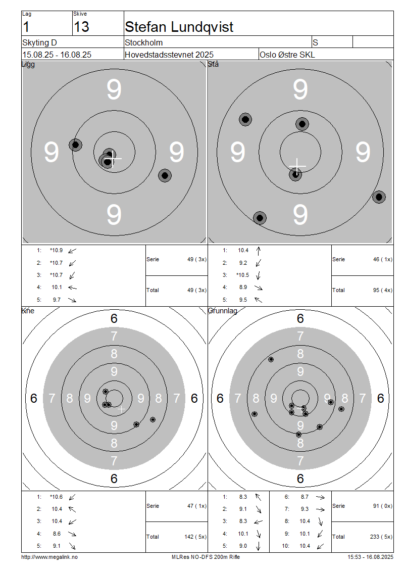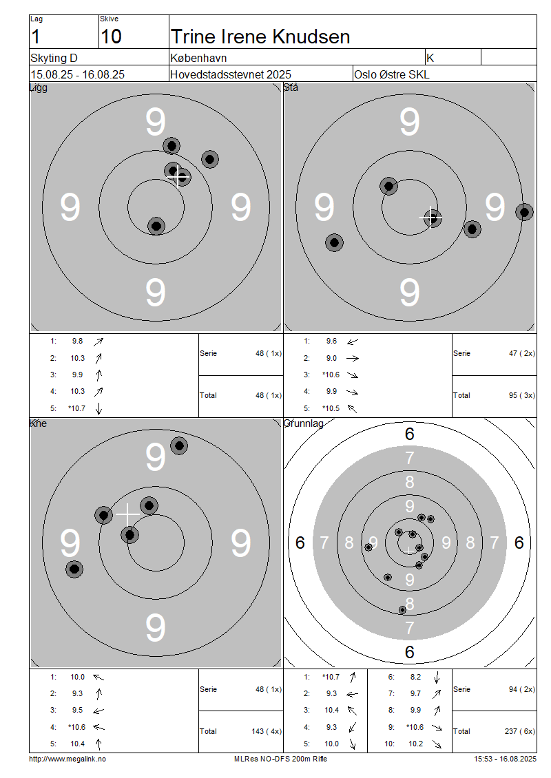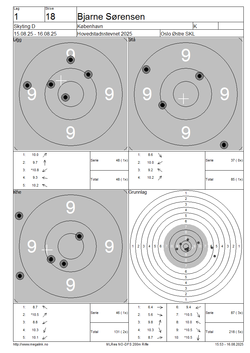 Resultater lag 1 Skyting D