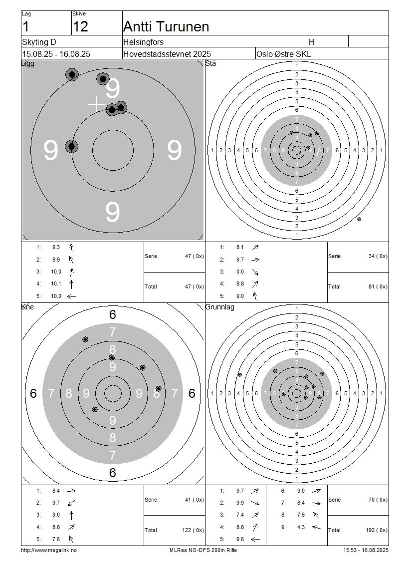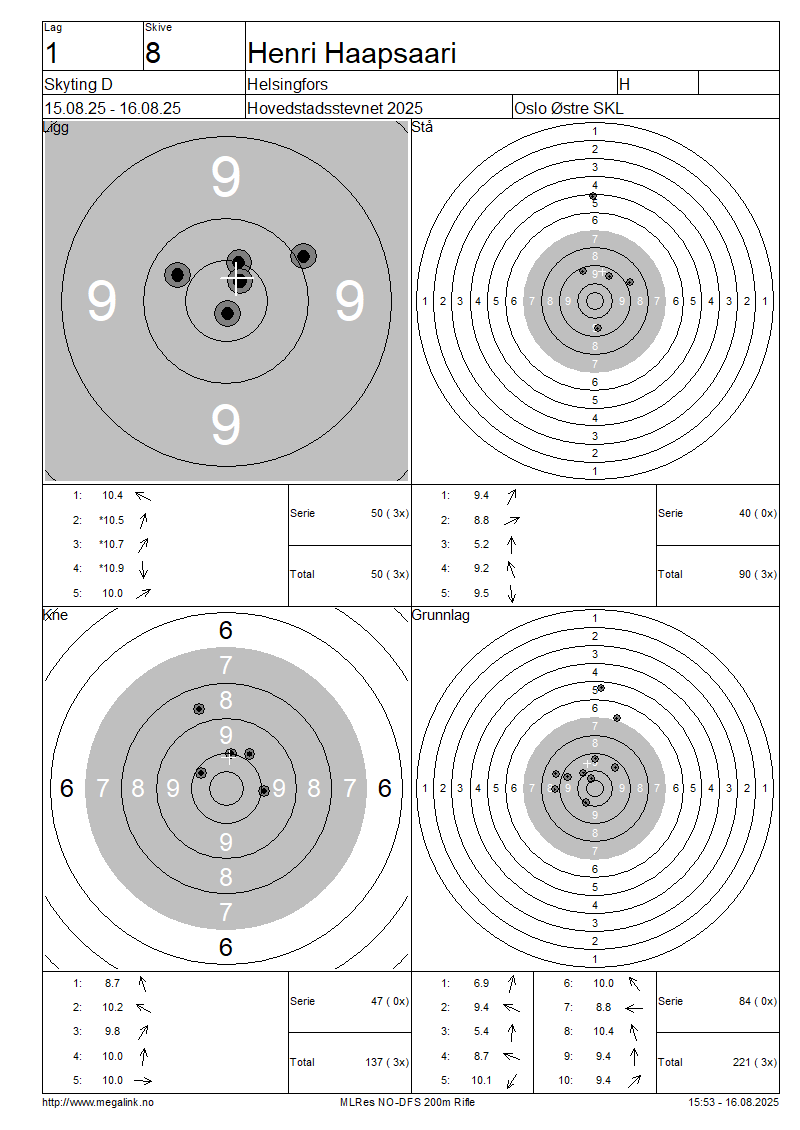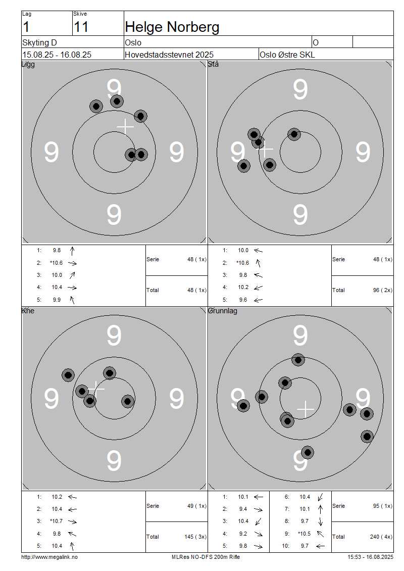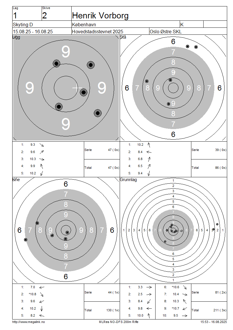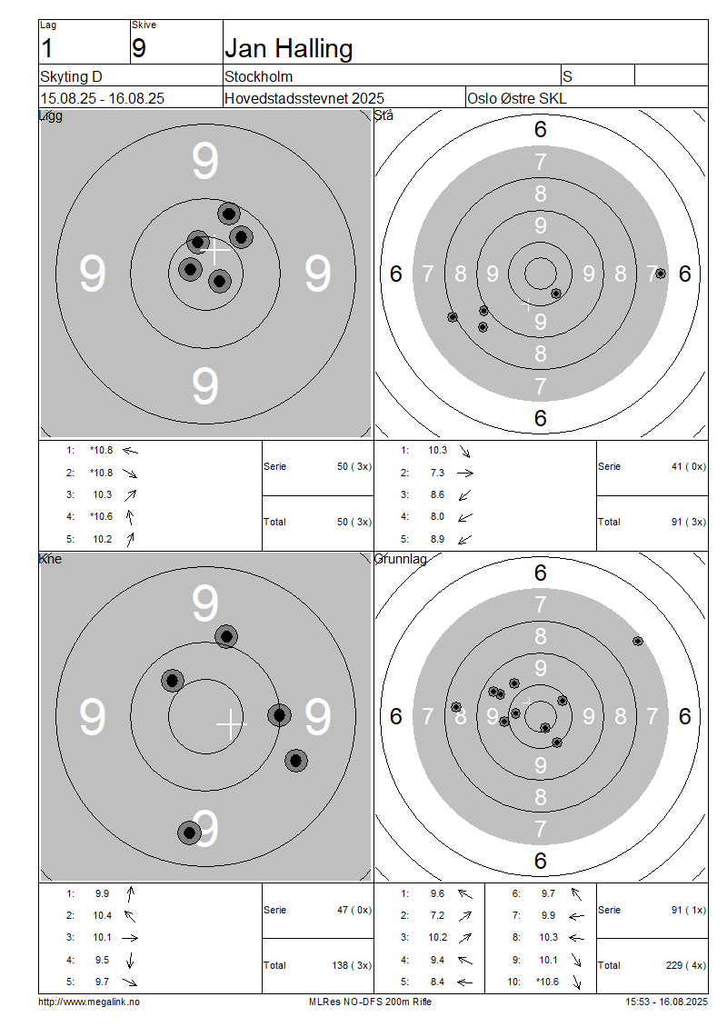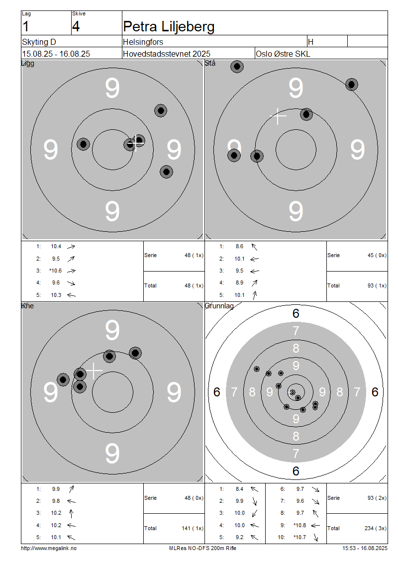 Resultater lag 1 Skyting D