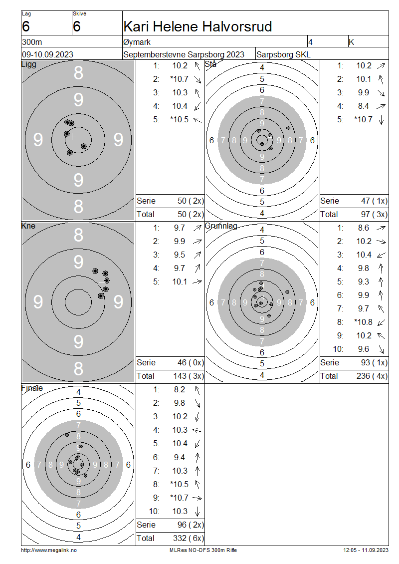 Resultater lag 6 300m