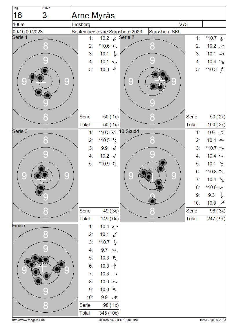 Resultater lag 16 100m