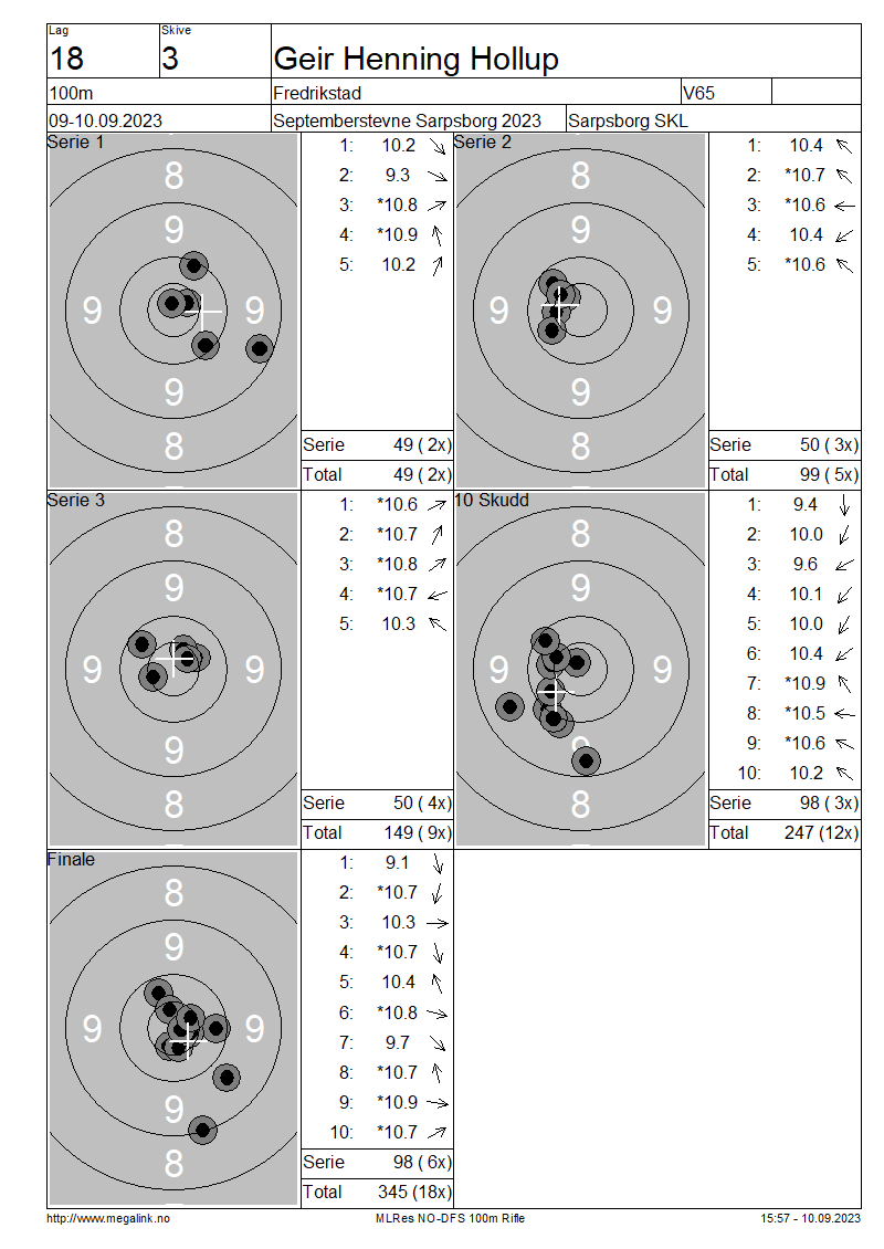 | 15 Skudd | 149 | 25 Skudd | 247 | 35 Skudd | 345 | ||||||||||||||||||||||||||||||||||||||||||