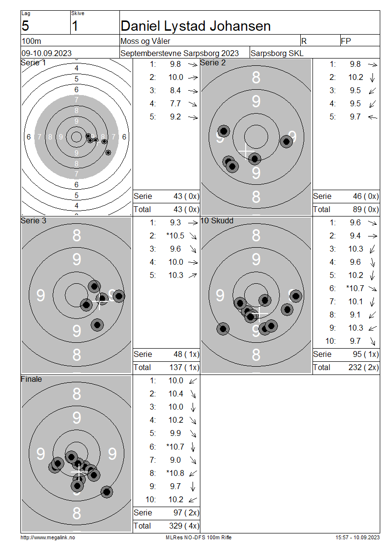 | 15 Skudd | 137 | 25 Skudd | 232 | 35 Skudd | 329 | ||||||||||||||||||||||||||||||||||||||||||