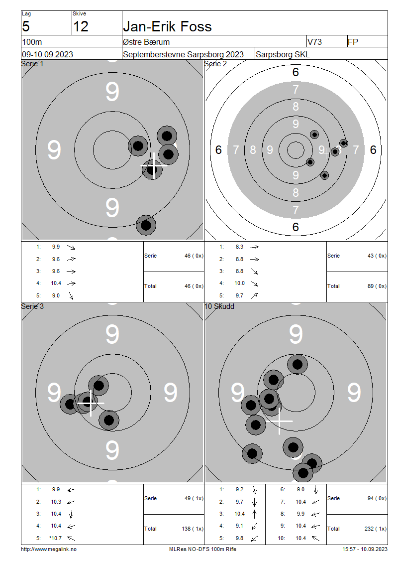 | 15 Skudd | 138 | 25 Skudd | 232 | 35 Skudd | 232 | ||||||||||||||||||||||||||||||||||||||||||