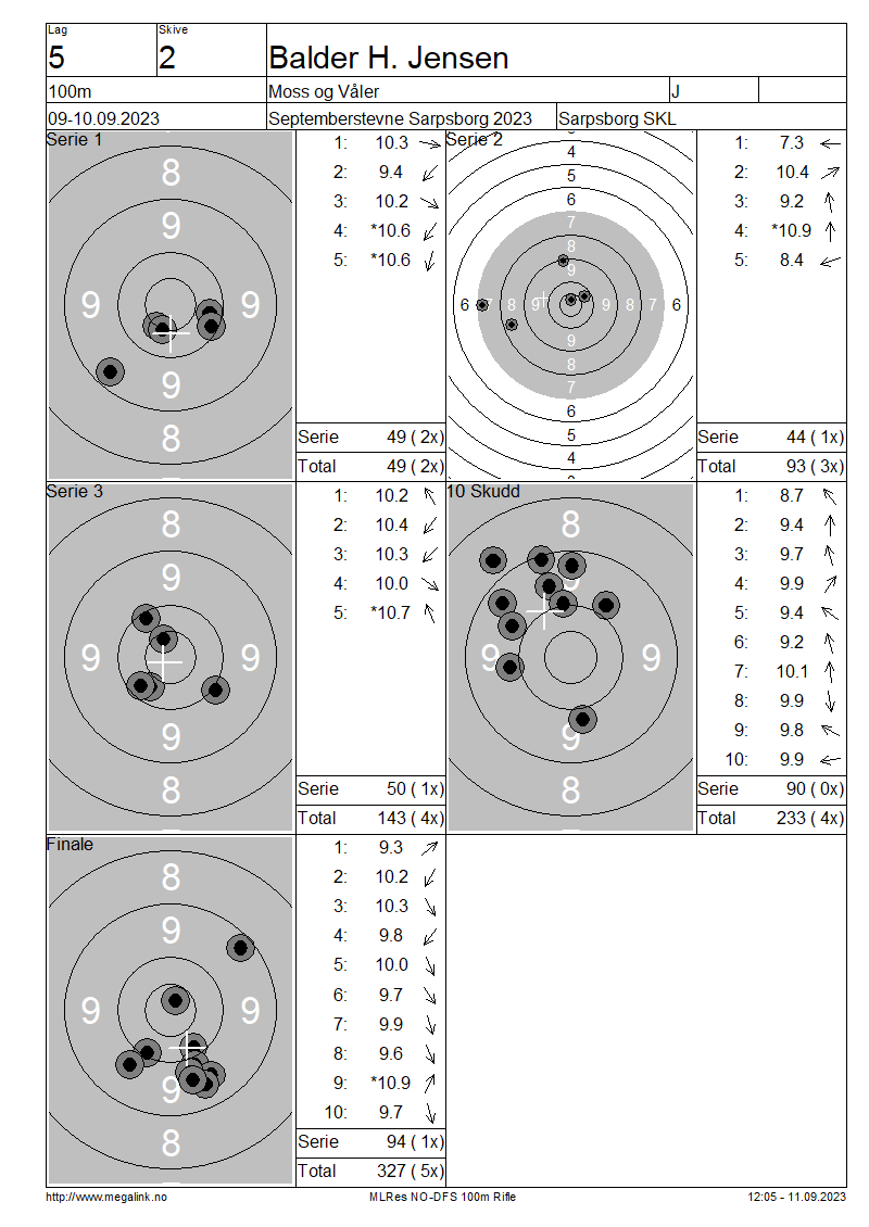 | 15 Skudd | 143 | 25 Skudd | 233 | 35 Skudd | 327 | ||||||||||||||||||||||||||||||||||||||||||